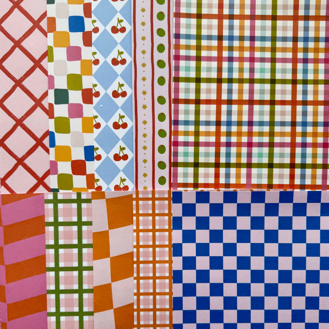 Este kit trae papeles tamaño A5, impresos en opalina de 120gr, con diferentes estampados para que puedas usar en tu journal, agenda, collages o lo que se te ocurra.