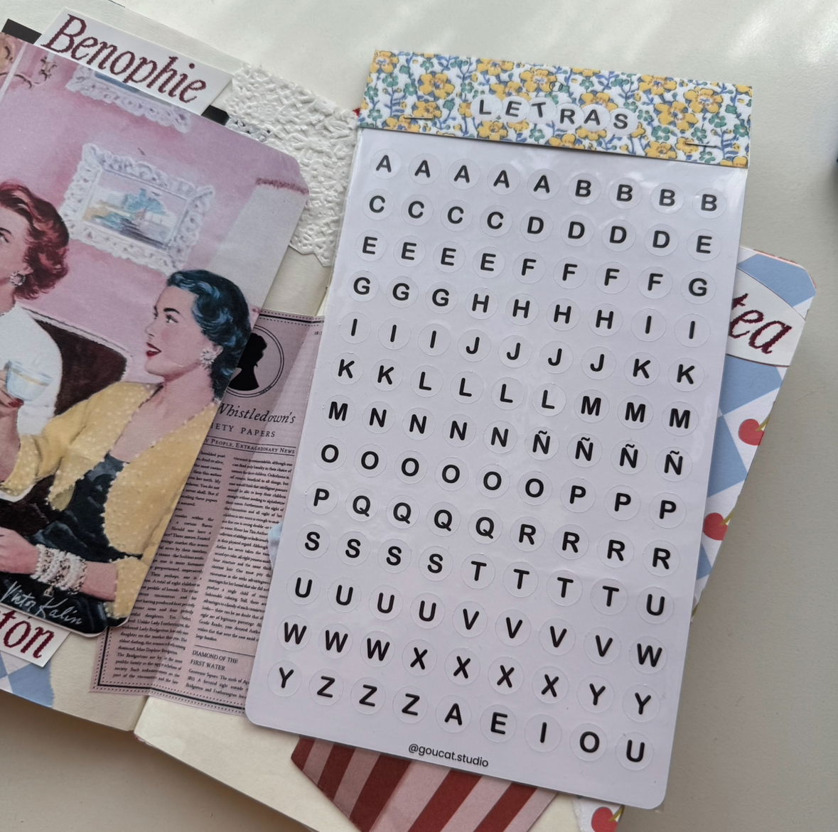 Contenido: Abecedario completo (A-Z) + vocales extra y signos.